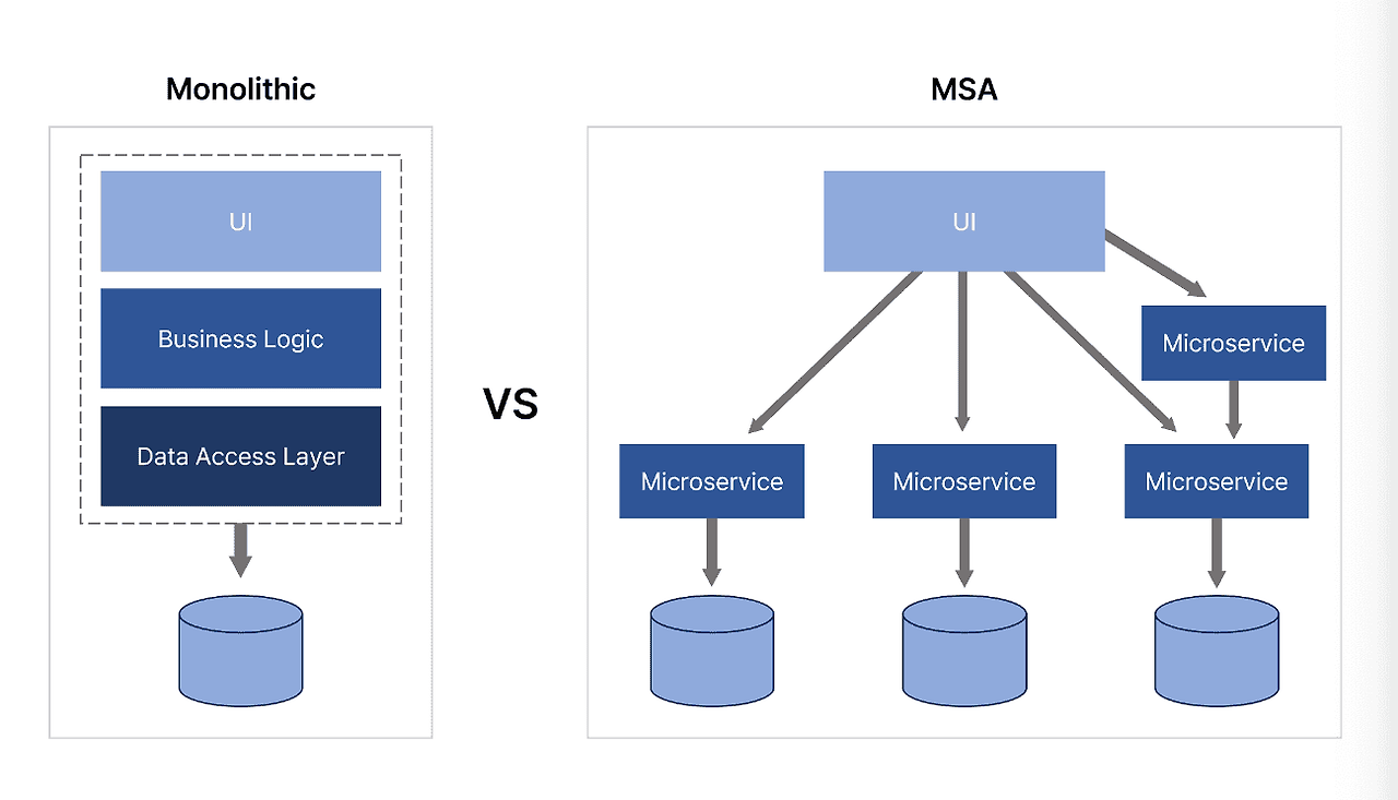 ① 모놀리식 아키텍처 vs 마이크로서비스 아키텍처(MSA)