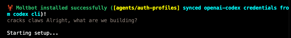 MoltBot은 그래픽 인터페이스가 아닌 터미널(CLI) 환경에서 설치가 진행된다.