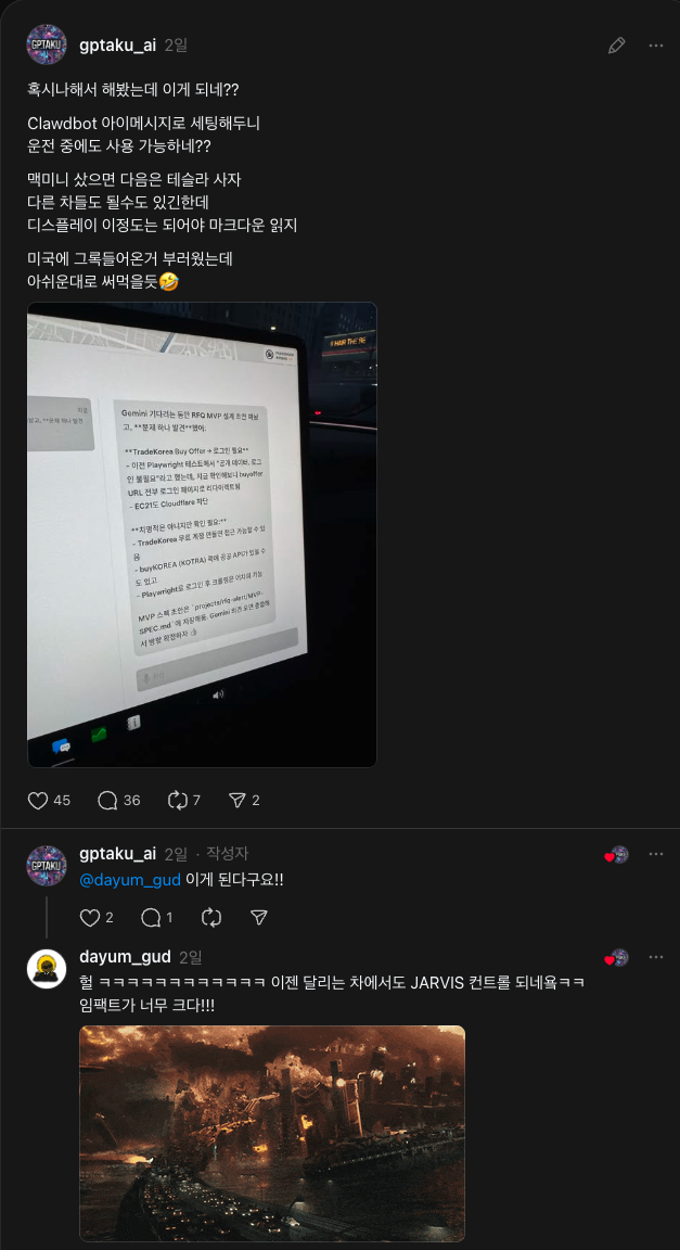 iMessage에서 MoltBot 구동이 되서 사람들이 테슬라를 주문하기 시작했다(?)